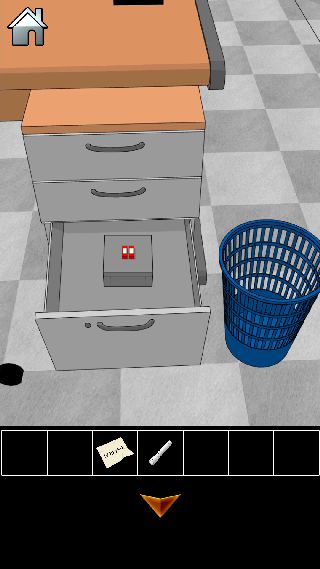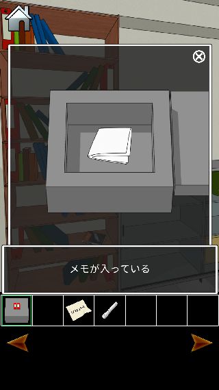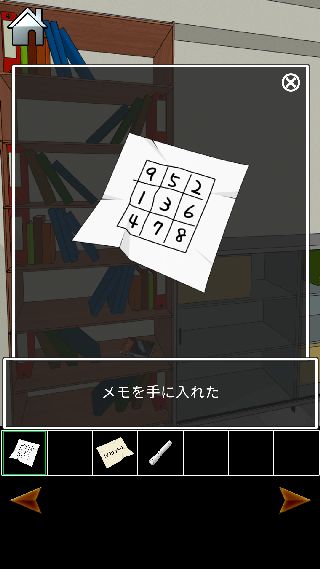 ここのヒントは、本棚の赤いファイルの位置にある。
