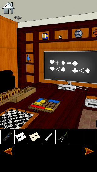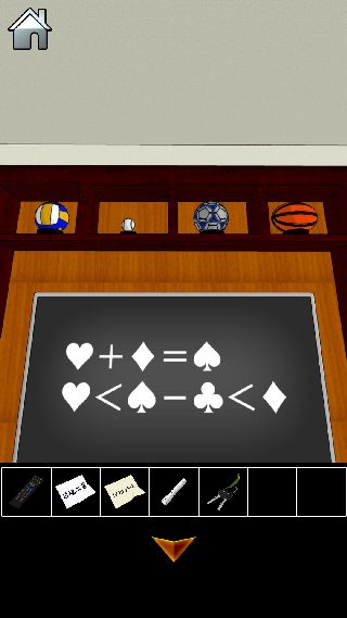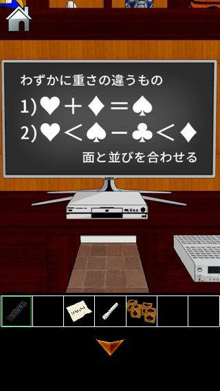 他にも出口前のゴルフクラブから『クローバー=5』、一心不乱の文字から『ハート=1』、本棚の時刻表から「ダイヤ=3」を導き出せる。