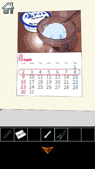 『甘=日、塩=土、氷=水、菓=木』の文字がそれぞれ隠されているので、カレンダーの枠の中の『日土水木=2856』になる。