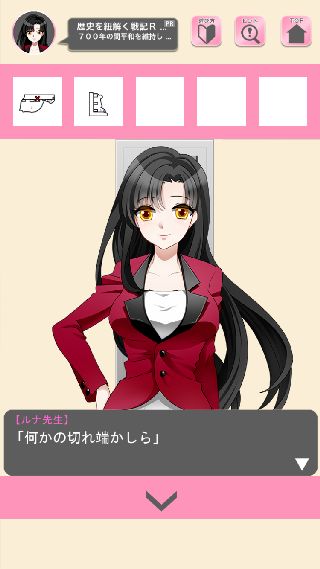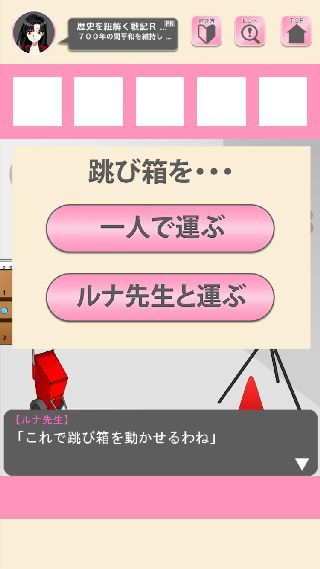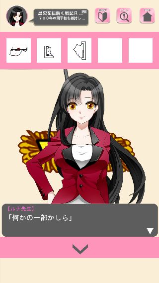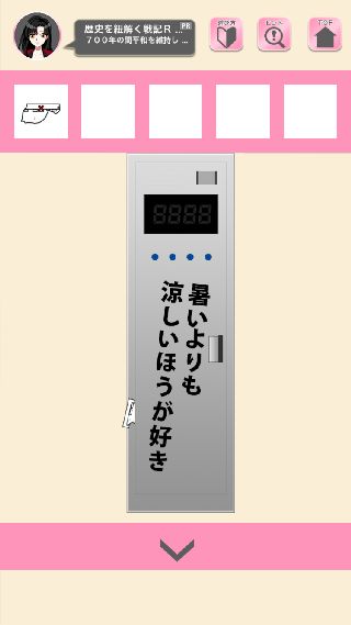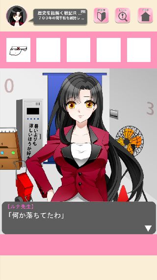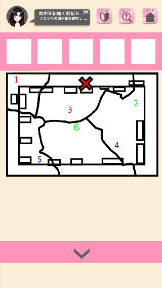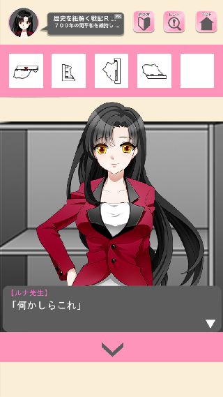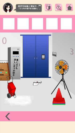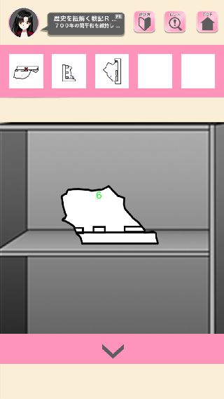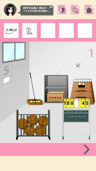 脱出ゲーム ルナ先生と僕~体育倉庫からの脱出~ 無料 4.0 評価する 送信する 第一章 床から「見取り図の切れ端」を入手。 ロッカーを拡大して、「見取り図の切れ端」を入手。 左に移動して、モップを拡大。 「見取り図の切れ端」を入手して、棚を拡大。 「見取り図の切れ端」を入手して、壁を拡大。 4枚の「見取り図の切れ端」を組み合わせる。 数字の順で色を見ていくと、『赤緑赤青青緑』となる。 右に移動。 跳び箱を拡大して、『赤緑赤青青緑』の順で押す。 選択肢で『ルナ先生と運ぶ』を選ぶと、コレクション画像を入手。 第一章 第二章 第三章 第四章