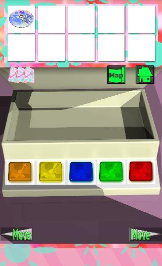 先程の時計の色のヒントから、上の『MATCH』の文字に当てはめて『オレンジ、黄、青、緑、赤』に合わせる。