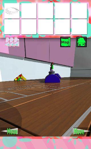 「青いブロック」でレールを直して、機関車を拡大。