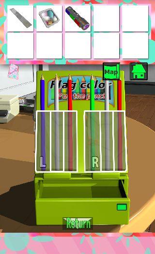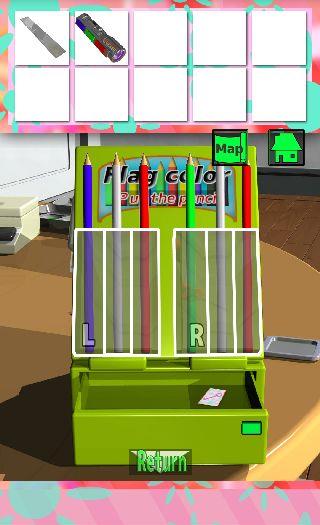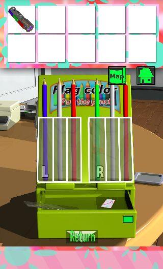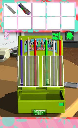 右の装置に『L=フランス、R=イタリア』の国旗になるように、「色鉛筆」を左から『青白赤、緑白赤』にセットする。