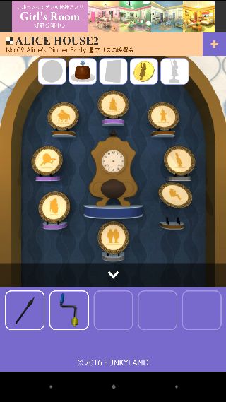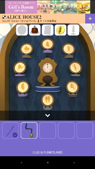 『上→右→下→左下→左上』なので、皿が置かれている台座の色に合わせると『紫、灰、灰、紫、茶』となる。
