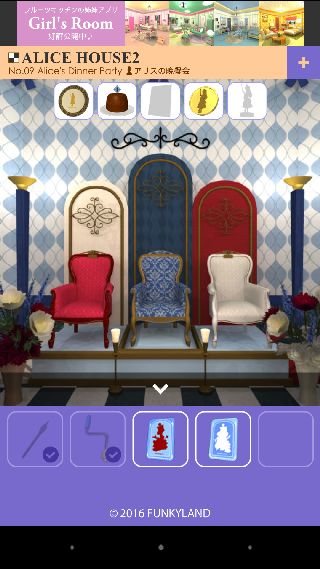最後の「アリス女王」を入手して、「出口のカギ」を入手。