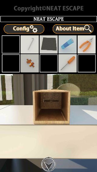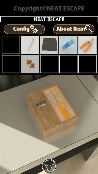 右奥に移動して、机の上の右の箱を拡大。