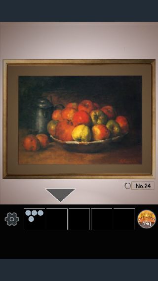 No.24の絵に描かれているリンゴの数を、メモをヒントに数える。