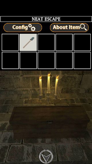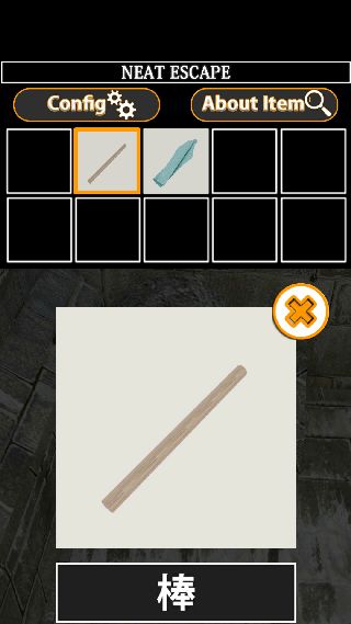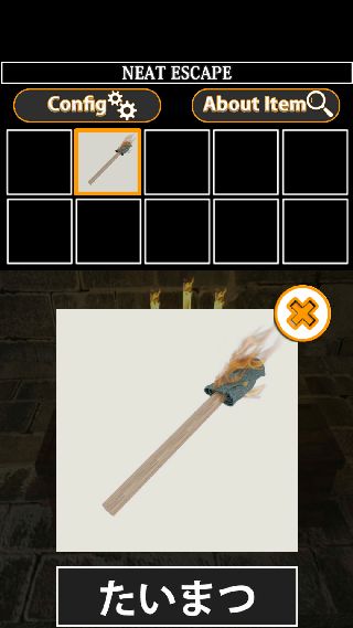 左の箱を拡大して、奥のロウソクに「棒」を使って「たいまつ」を入手。