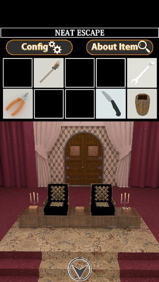 脱出ゲーム 城からの脱出 無料 2.5 評価する 送信する NEAT ESCAPE 攻略その9 奥の扉を開けて、外に出る。 奥に進んで、扉を開けて中へ。 右下を拡大して、「スパナ」でボルトを外す。 中央を拡大して、「樽」をセットする。 上を拡大して、「たいまつ」で火をつけて脱出。 攻略その1 攻略その2 攻略その3 攻略その4 攻略その5 攻略その6 攻略その7 攻略その8 攻略その9