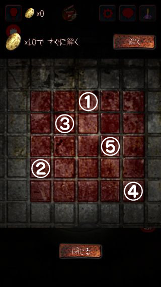 「香水」を複数回掛けて、先ほどの鏡をヒントにタイルを順にタップする。
