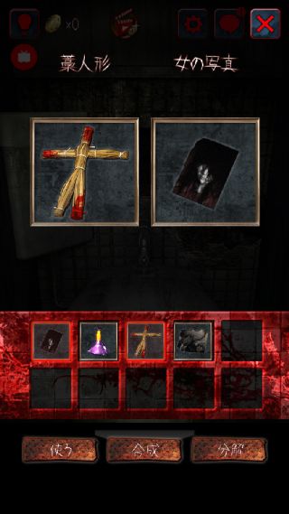 脱出ゲーム:赤い女 無料 4.6 評価する 送信する EDGES LLC. バッドエンディング3:死の三角関係 「藁人形」と「女の写真」を合成する。 頭に被さっている袋を外すと、バッドエンディング3へ。 ※ 先にシークレットエンディングを見てしまった場合は、出口の扉を開けてから袋を取って、出口前で画面移動をすればOK。 攻略その1 攻略その2 攻略その3 攻略その4 攻略その5 攻略その6 バッドエンディング1:婚約破棄 バッドエンディング2:歪んだ愛 バッドエンディング3:死の三角関係 グッドエンディング:脱出成功 「唇(キスマーク)」の場所 その1 「唇(キスマーク)」の場所 その2 隠しエンディング:心霊スポットの誕生 実績一覧 その1 実績一覧 その2