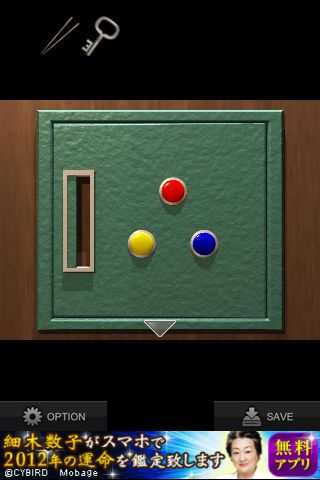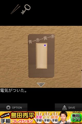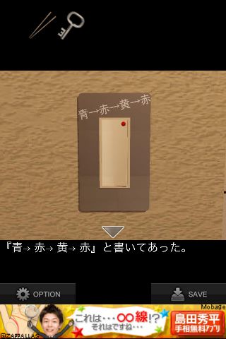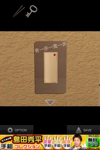 壁にあるスイッチを拡大、『青→赤→黄→赤』を確認。