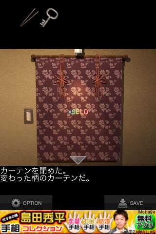 カーテンを閉めて『xSELO』の文字を拡大。