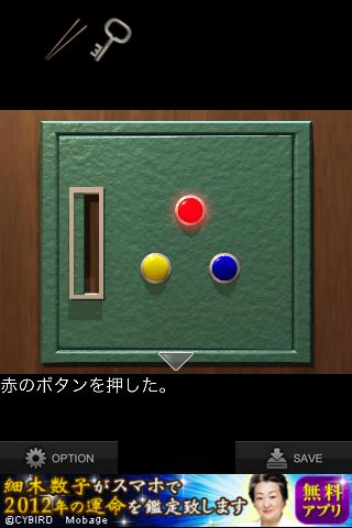 中央の装置のボタンを『青→赤→黄→赤』の順で押す。