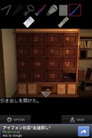 『16』の引き出しから「カギ」を入手。