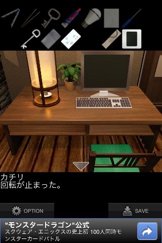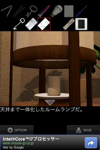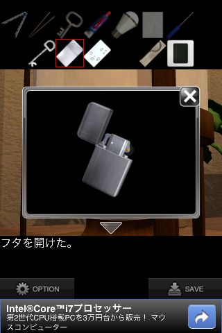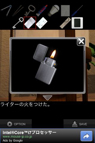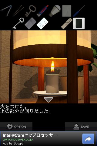 ルームランプに火をつけて手前に移動するとカチリと音がする。