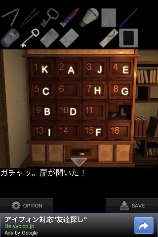 アルファベット順に『A』から『L』まで押していくと、扉が開いて「鋳型」を入手。