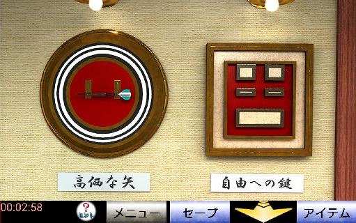 壁の額を拡大して、丸の小さい順で『左下→中上→右下→右上→中下→左上』を確認。