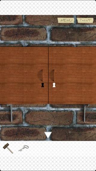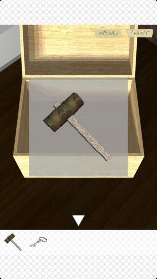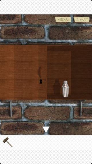 右の壁の棚を拡大して、「ハンマー」で壊す。