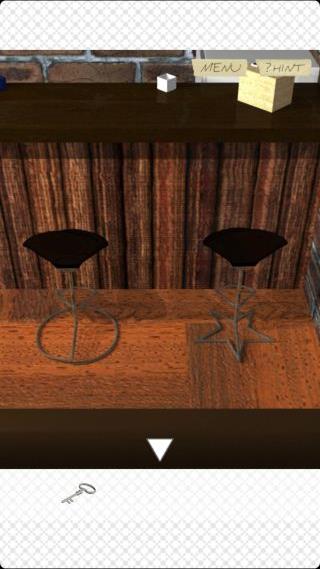 カウンター前の4つの椅子を拡大して、脚の部分の形『四角形、三角形、円形、星』を確認。