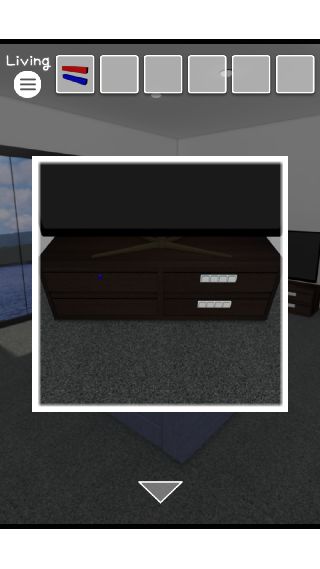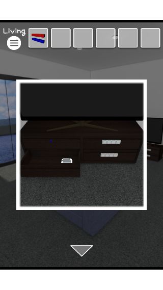 テレビ台を拡大して、左下の引き出しを開ける。