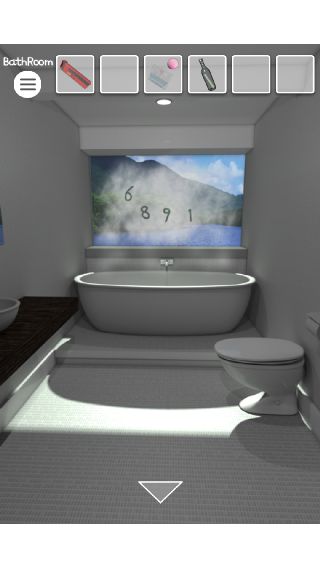 バスルームに移動して、窓に浮かび上がった数字『6891』を確認。