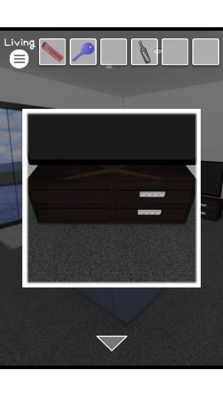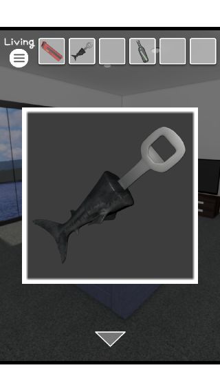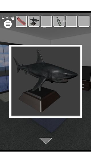 「青いカギ」で左上の引き出しを開けて、「サメの置物」を入手。