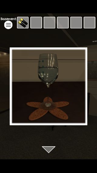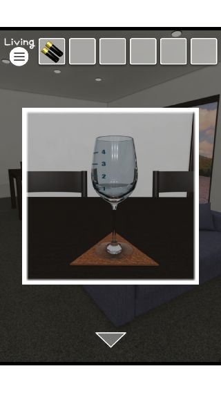 リビングに戻って、ダイニングテーブルの上のグラスを拡大。