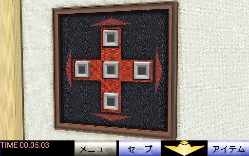 右のボタンを『右上下右左』の順で押して、最後に中央を押すと扉が開く。