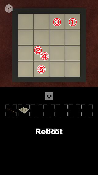 最初の部屋に戻って、クマの模型のある一番左の穴を拡大。