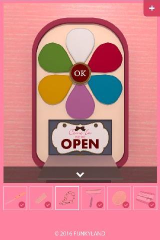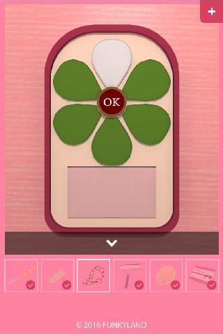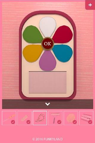 正面の壁の装置を拡大して、白から時計回りに『赤、青、紫、黄、緑』に合わせる。