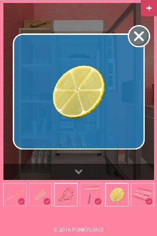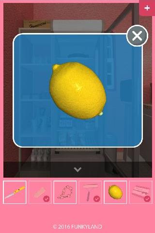 「レモン」を「ナイフ」で切って、店内に戻って反対側に移動。