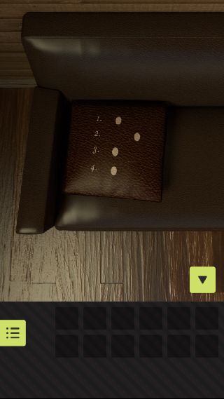 脱出ゲーム 木がかおる部屋 無料 0 評価する 送信する 攻略その1 反対側に移動。 ソファーの上のクッションを拡大して、『1=左、2=右、3=左、4=左』を確認。 クッションを持ち上げて、「ドライバー」を入手。 右のパーカッションを拡大して、『左右左左』の順で叩く。 右上から「クローバーのカギ」を入手。 地図を拡大して、『東=シャベル、棒』、『南=心臓、ダイヤ』を確認。 反対側に移動。 扉を拡大して、下のマットをめくる。 「ドライバー」でネジを外す。 中から「スペードのカギ」を入手。 攻略その1 攻略その2 攻略その3 攻略その4
