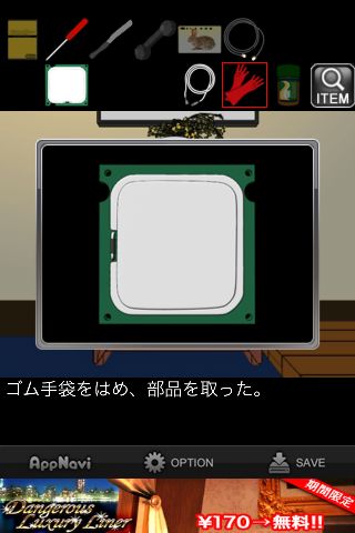 扉を開けて「ゴム手袋」で「部品(CPU)」を入手。