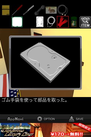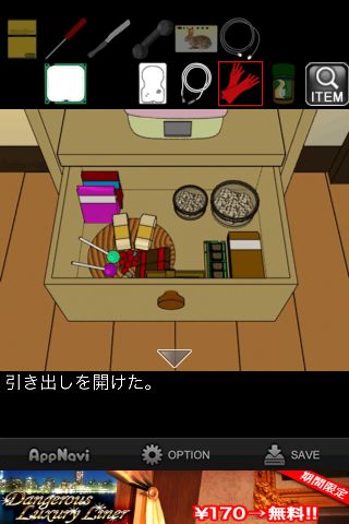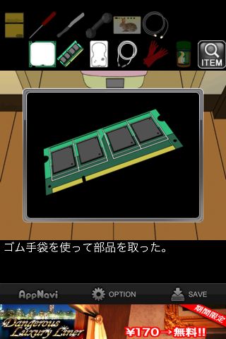 引き出しを開けて「ゴム手袋」で「部品(メモリ)」を入手。