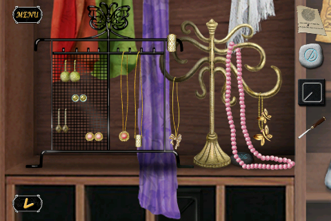 棚の中央を拡大して、右下のネックレスの影から「小さな石」を入手。