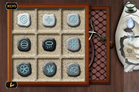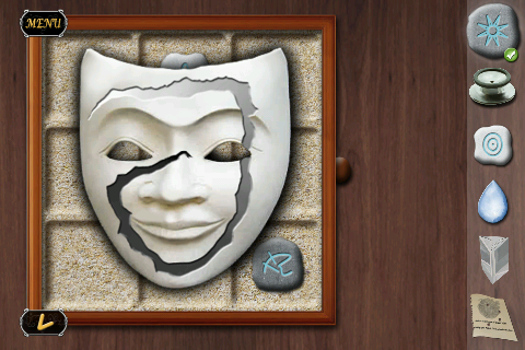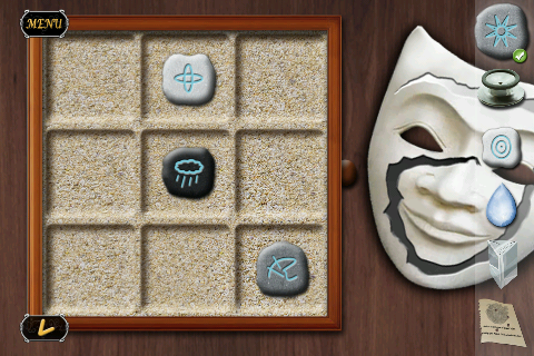 仮面を動かして、仮面の傷のとおりに左上から順に濃い色の「小さな石」を置いていく。