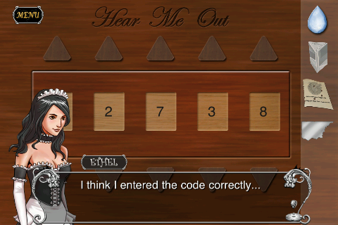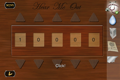 通常『Click!』と表示されるところ、それぞれの列で1つだけ音と共に『CLICK!』と表示される数字があり、5桁全てを入力すると窓が開いてChapter 1クリアとなる。