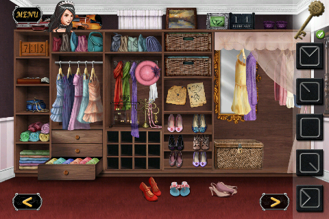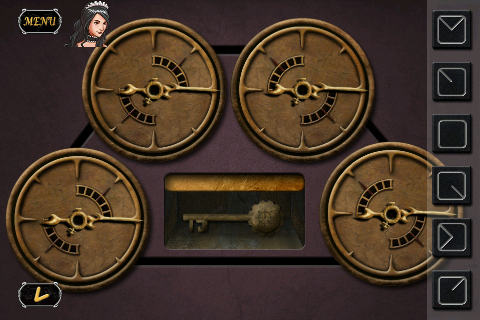 先ほどの時計の針が止まった位置にすべての針が止まるようにすると「カギ」を入手。