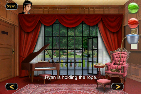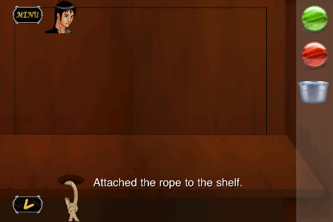左上の棚を拡大して、穴に「ロープ」を使う。
