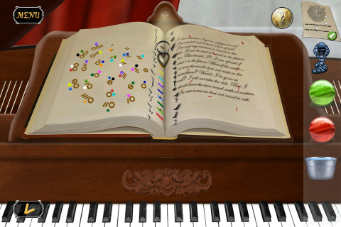 「紙」を重ねると、穴に赤い線が見えるので、線の方向を覚えておく。