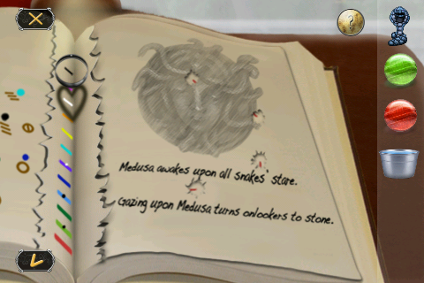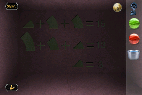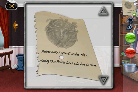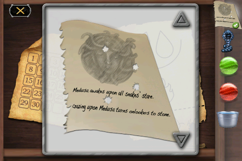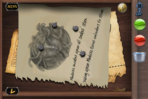 メデューサの上の暗号を解読する。プレイごとにランダムで変わるが、写真のケースだと『大=4』『中=6』『小=3』となる。