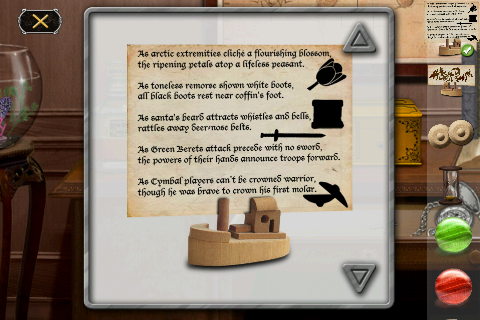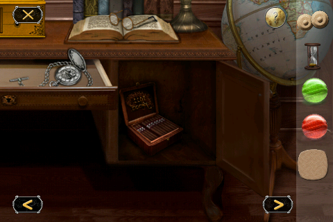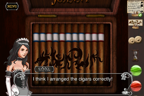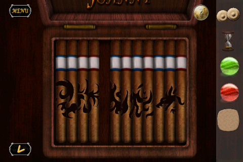 「メモ」の1つをヒントに、葉巻を並び替える。葉巻の青と赤の並びの順番(ランダム)を覚えておく。