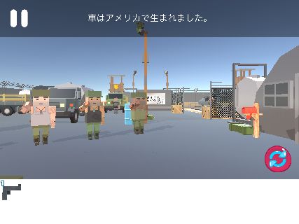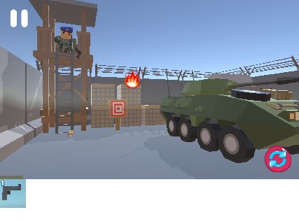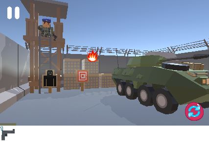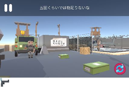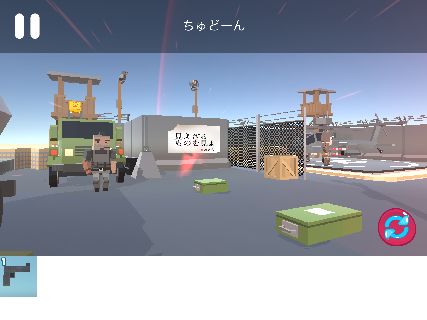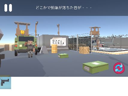 戦車の前に移動して、左の的に「ピストル」を使う。