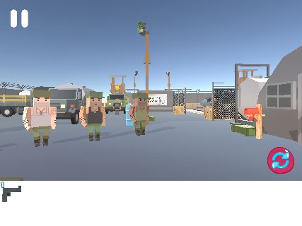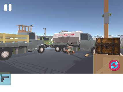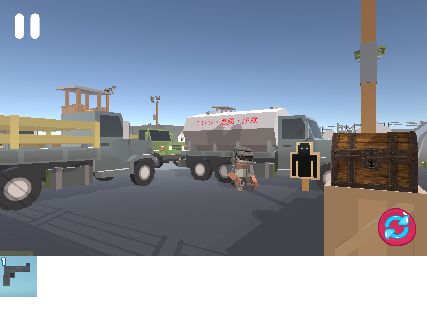 的の右にあるドラム缶を「ピストル」で撃つ。