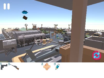 見張り台に移動して、UFOを「ライフル」で撃つ。