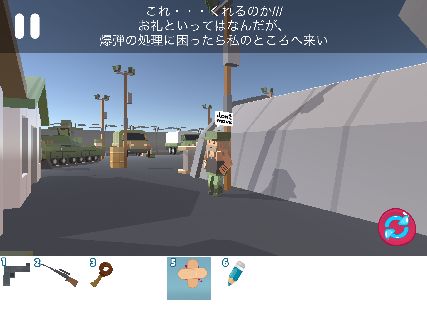 兵士は手を怪我しているので、「ばんそうこう」を渡す。