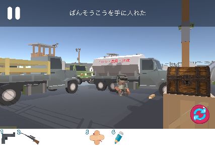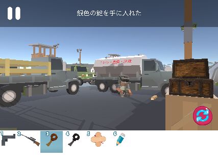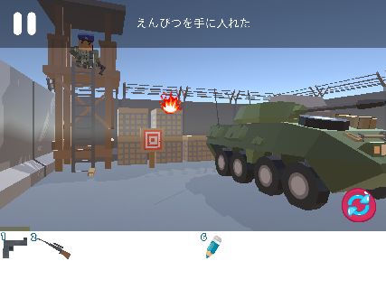 戦車の前に移動して、左下から「えんぴつ」を入手。