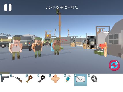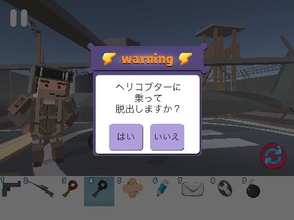 脱出ゲーム 怒りの脱出 無料 0 評価する 送信する 攻略その3 緑の箱の前に移動して、箱の上の白い紙に「えんぴつ」を使って「手紙」を入手。 3人の兵士の前に移動。 右のポストに「手紙」を投函して、「レンチ」を入手。 ヘリコプターの前に移動して、ヘリコプターに「レンチ」を使う。 「爆弾」を入手。 ここから制限時間があるので、素早く行動する。 スタート地点に移動して、兵士に「爆弾」を解除してもらう。 ヘリコプターの前に移動。 「銀色の鍵」を使って、『はい』を選択して脱出。 攻略その1 攻略その2 攻略その3