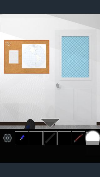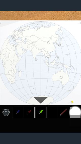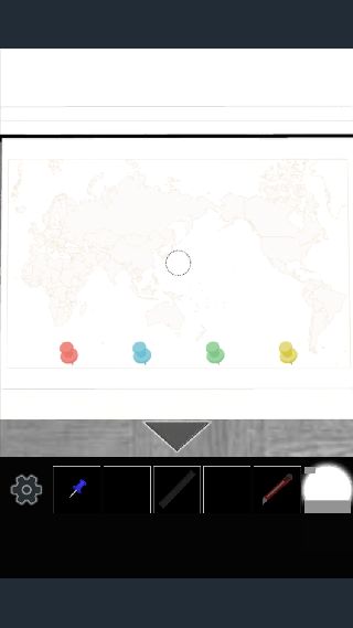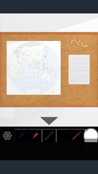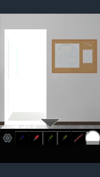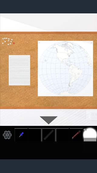奥の扉の横のコルクボードを拡大して、右上から「緑の押しピン」を入手。